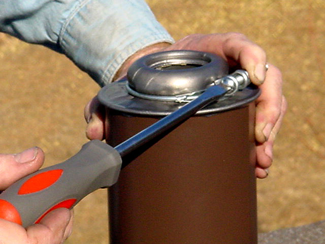 5. Slide the top sleeve over the base cylinder until the lead seal fits tightly on the vent pipe. Tighten the ring clamp.